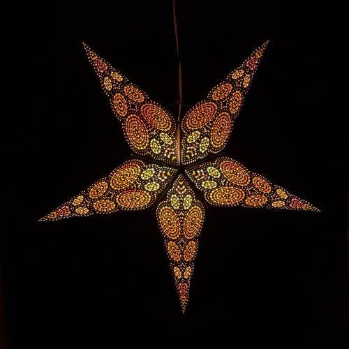 Paper Christmas star Ø60 cm Goa - incl. lighting set - black/orange/yellow